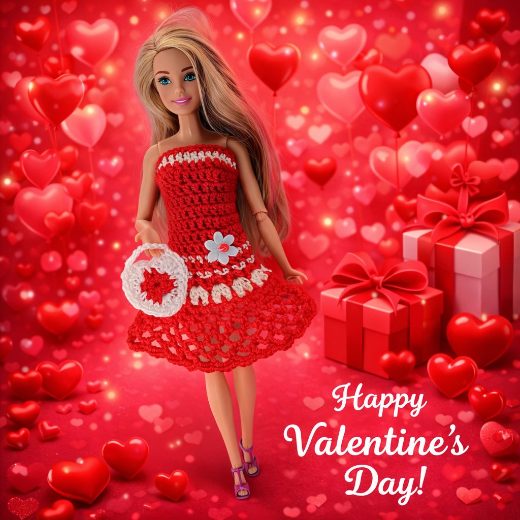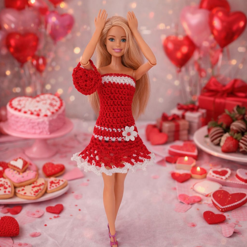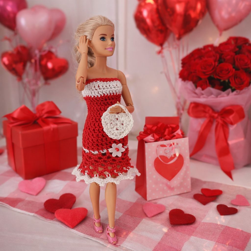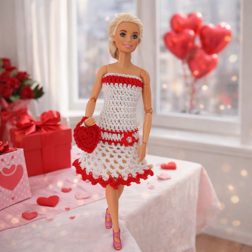 Úžasné valentýnské šatičky doplněné srdíčkovou kabelkou pro panenku Barbie