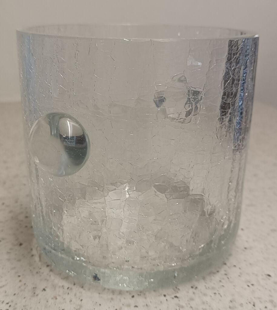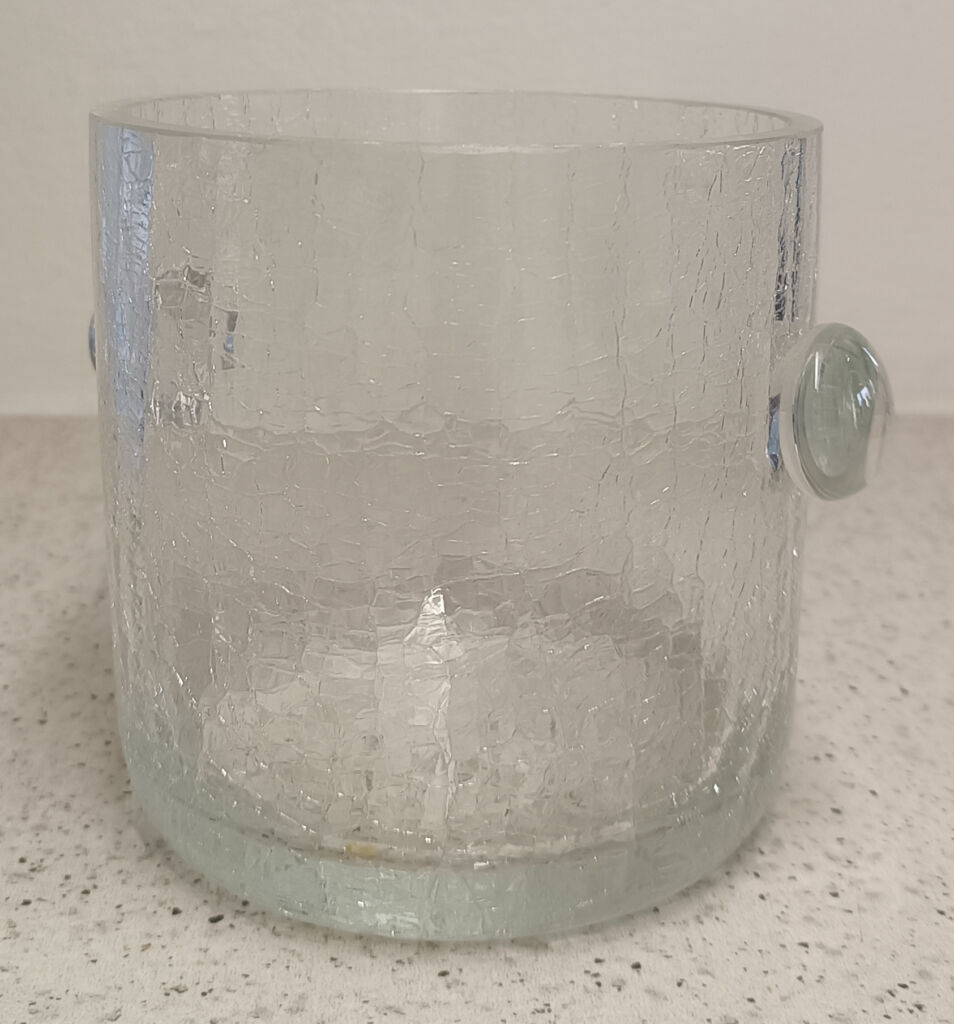 Prodám skleněnou, silnostěnnou, dekorativní, chladící dózu na láhev vína a led. Díky silné stěně dokáže dlouho udržet požadovanou teplotu. Průměr 12,5 cm, výška 12,5 cm. Osobní odběr v Praze.