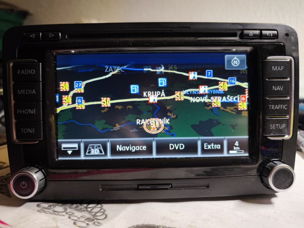 Plně funkční, odzkoušena navigace, optický parkovací systém, přehrávání z SD, CD, DVD, AUX atd.