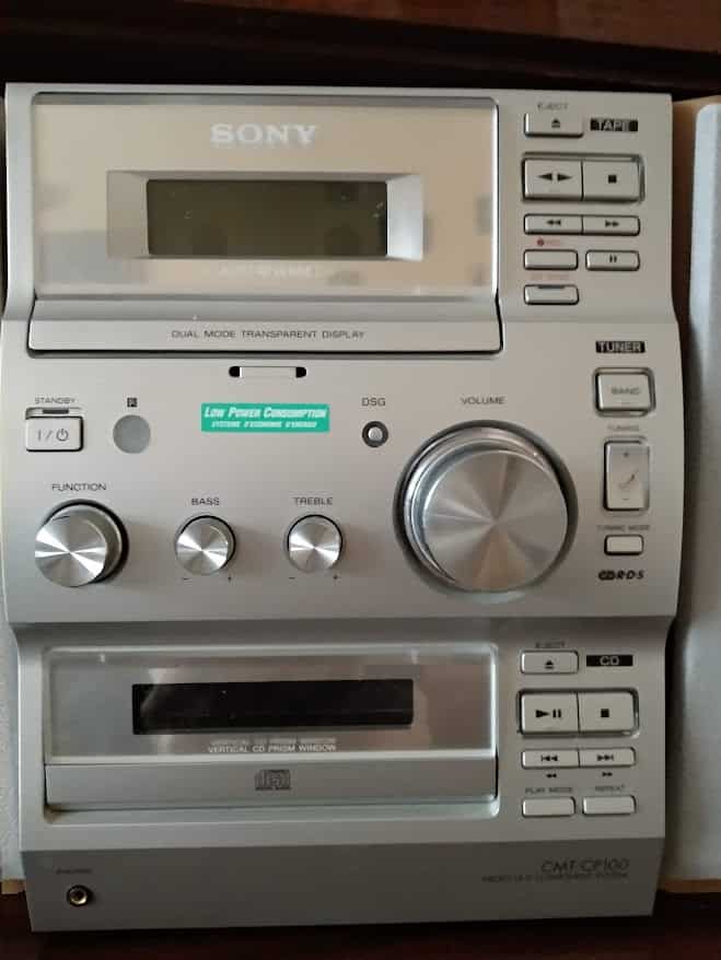 Má CD přehrávač, kazetový přehrávač a rádio.