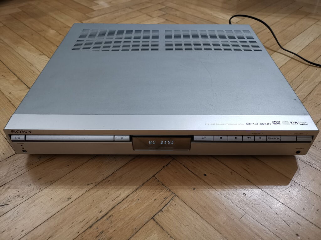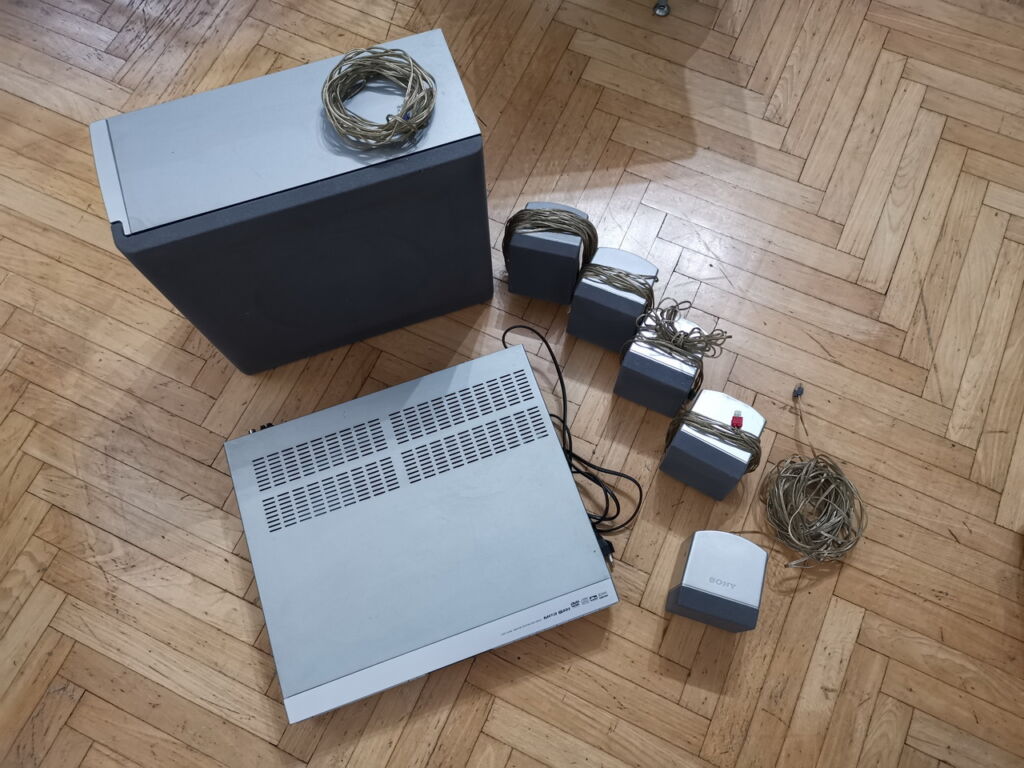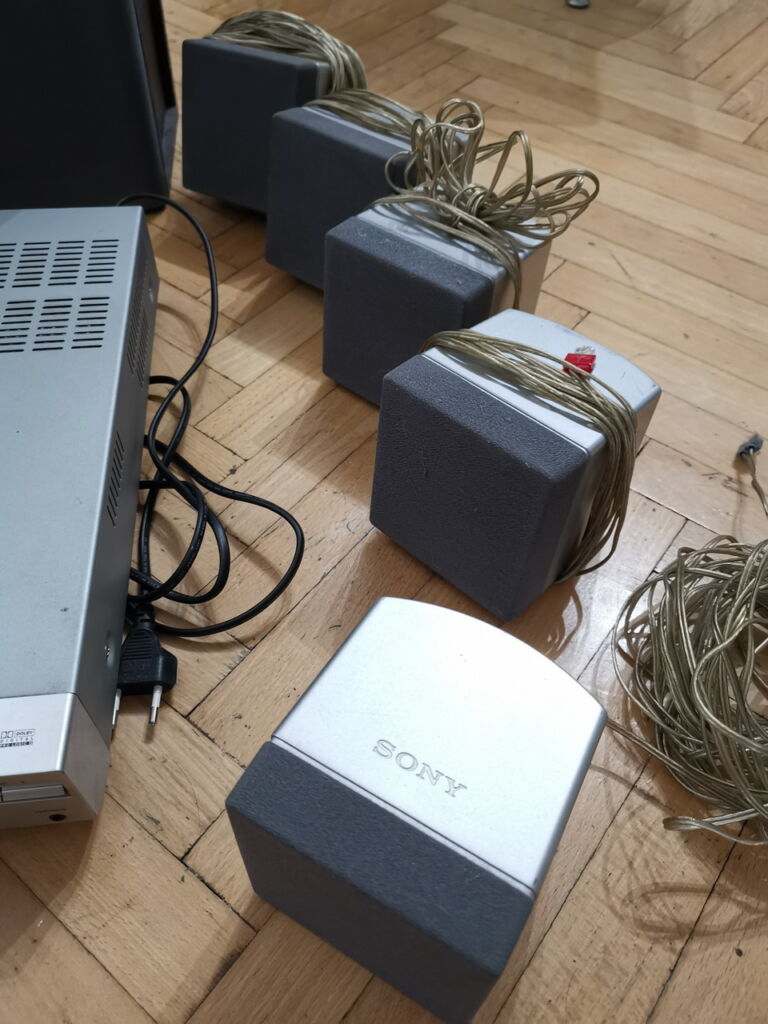 Prodám funkční 5.1 domácí kino SONY DAV-SB100 + 5+1 reproduktory SS-WS9/SS-TS9. Receiver s CD přehrávačem a zesilovačem 2×50 W. Vše je kompletní, funkční, včetně kabeláže, nese známky běžného používání ale nic není poničené. Dálkový ovladač je součástí, ale přestal fungovat úplně, tedy ten je jediný nefunkční (řešením je naučit univerzální ovladač za pár stovek v případě potřeby). Cena 2000,- Kč. Mohu poslat i ukázkové video.