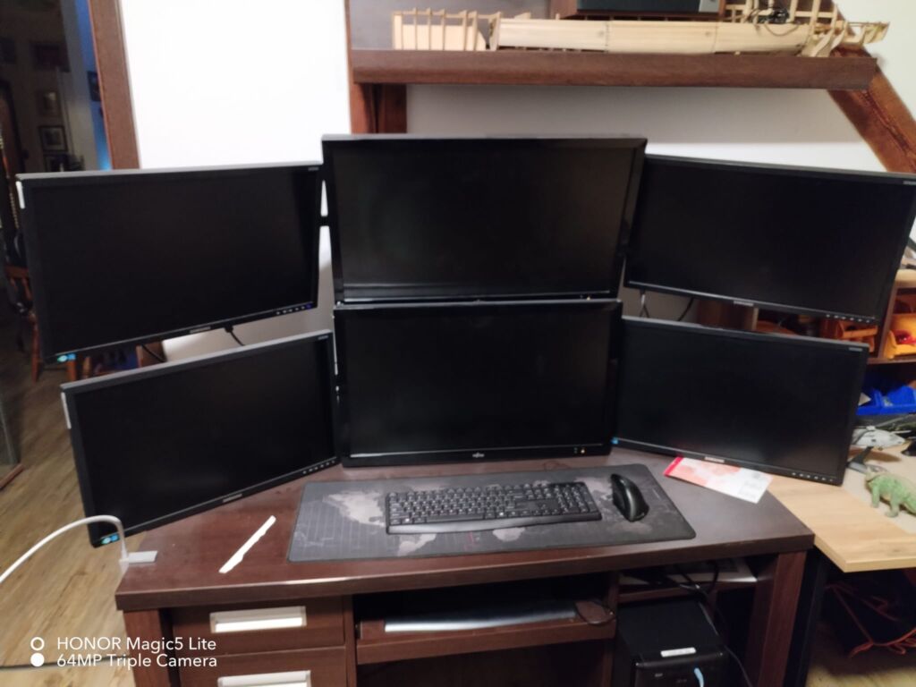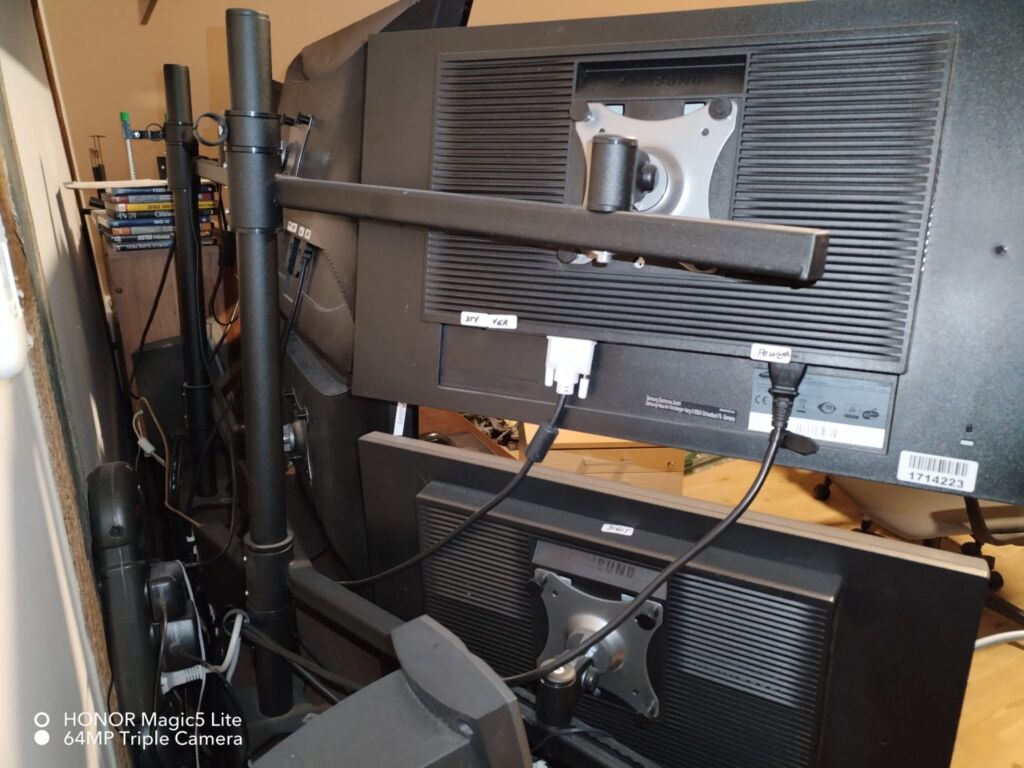 Použitý, jako nová stolní držák na 6 monitorů do velikosti 27“. Možno i se 4 monitory 24“ SAMSUNGa 2 monitory 27“ FIJITSU. Původní cena stojanu 9 500,- dám za 6 000,-. Monitory 24“ za 1000,-, monitory 27“ za 1500,-. Nejsou herní. Celá sestava s monitory za 11 000,-. Osobní odvoz.