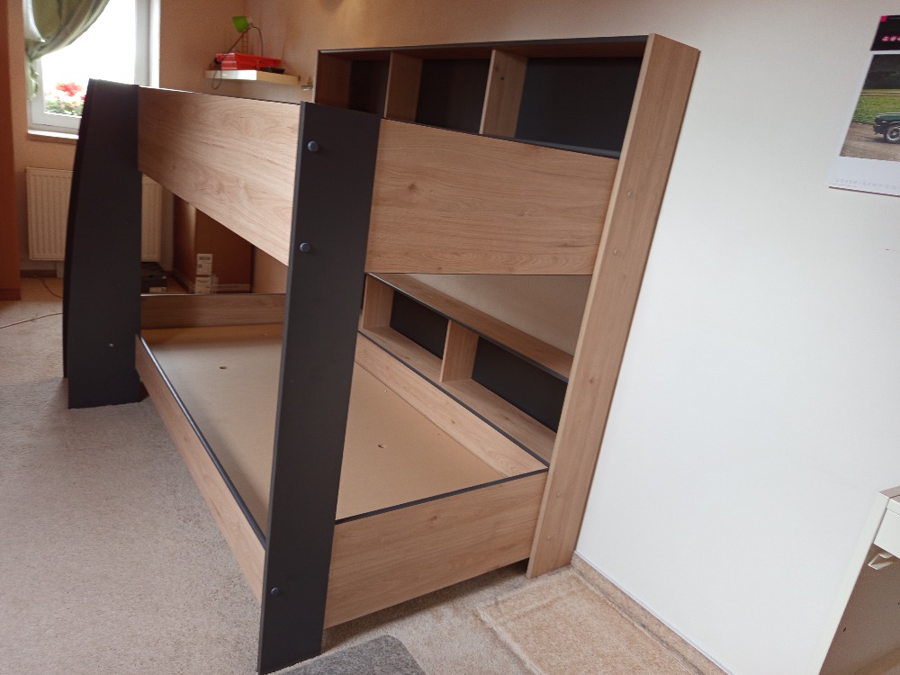 Prodám dvoupatrovou postel Leo (v odstínu světlého buku). Je nepoškozená a v perfektním stavu. Rozměr obou roštů na matrace je 90×200 cm. Délka postele je 207, šířka 108 cm, šířka se schůdky 130 cm. Nosnost jednoho lůžka 90 kg, celková nosnost postele 180 kg. Vzdálenost roštů 80 cm. Pouze osobní převzetí.