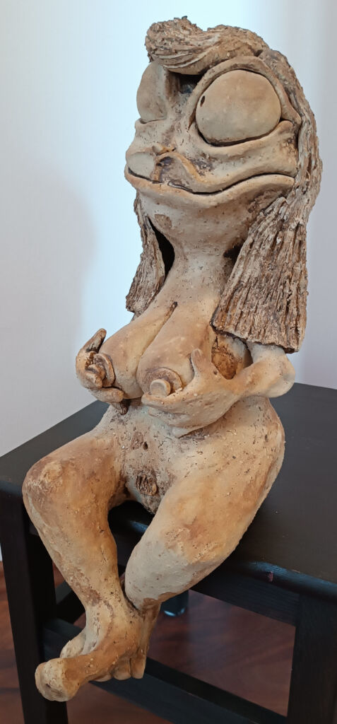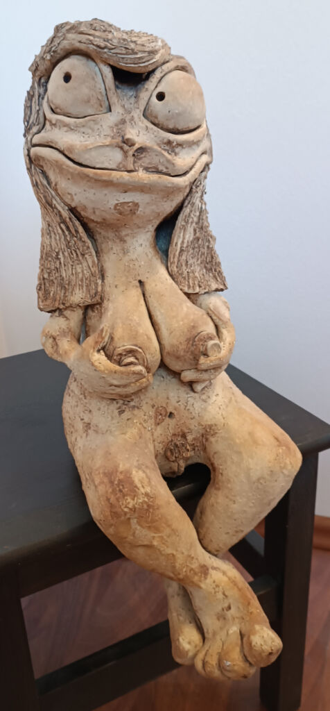 Keramická socha vodnice, pálená keramická hlína, ručně modelovaná, natřeno burelem, odolná povětrnostním podmínkám, nesignováno. Výška 44 cm. Osobní odběr v Praze.
