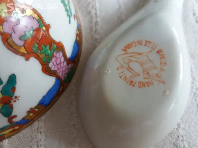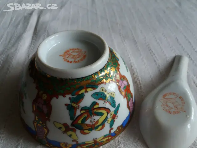 Krásná čínská porcelánová miska se lžičkou,viz.foto,miska prům.vrchní 11 cm,výška 6 cm,lžička délka 13 1/2 cm,prům.5 cm,nepoškozené,cena 170,-kč +zásilkovna