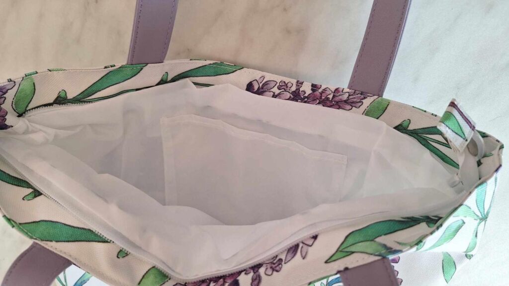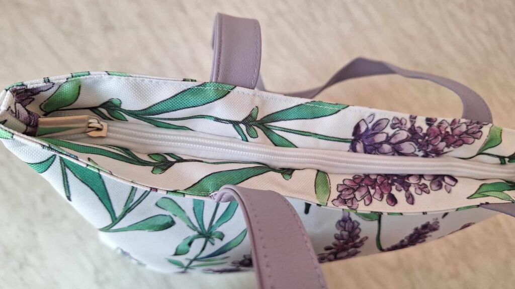 Prostorná a pevná taška s dlouhými uchy, hlavní přihrádkou na zip a kapsou v podšívce. Rozměry: 38x38x8 cm. Kvalitní materiál omyvatelný polyester, umělá kůže. Levandulový design, taška je krásná, úplně nová. Mohu poslat Balíkovnou, Zásilkovnou.