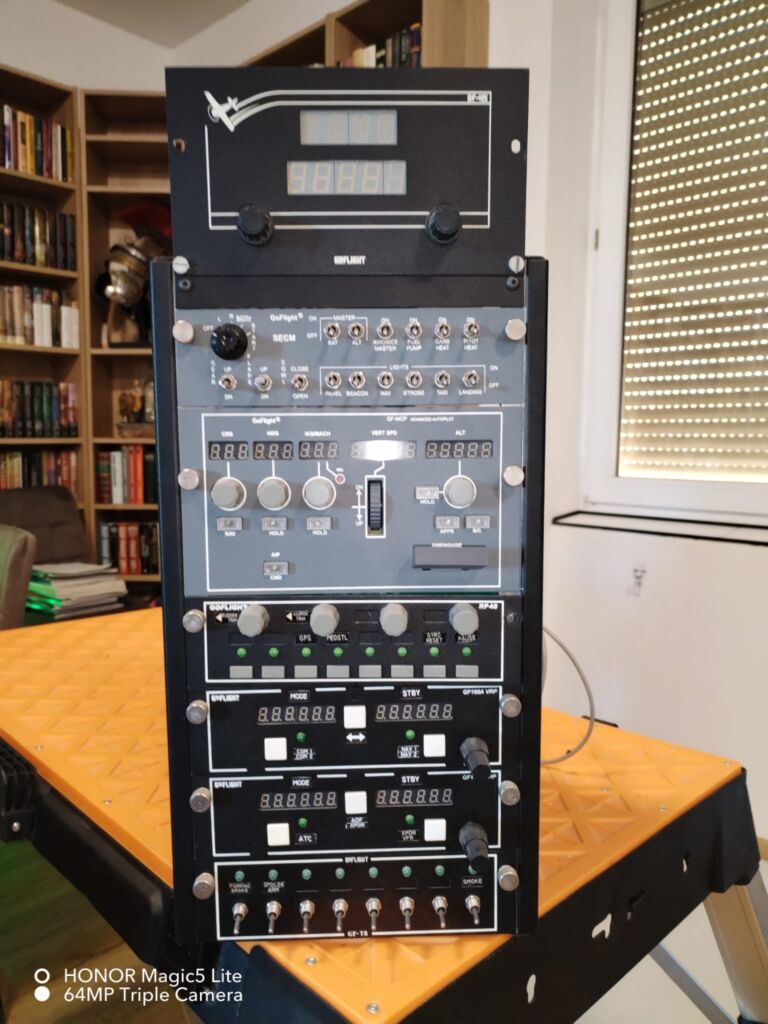 RACK byl používán na MSFX ale nevidím důvod proč by neměl fungovat i s jinými. RACK je osazen MULTIFUNKČNÍM DISPLEJEM, AUTOPILOTEM, DESKOU OVLÁDÁNÍ MOTORU, SVĚTEL, PODVOZKU A KLAPEK, 2 X RADIOPANEL, DESKA S POTENCOMETRY A DESKA S PŽEPÍNAČI. Připojuje se přes USB. Veškerou dokumentaci v AJ i ČJ dodám. DO mailu zašlu detaily. Cena 7 000,- Kč.