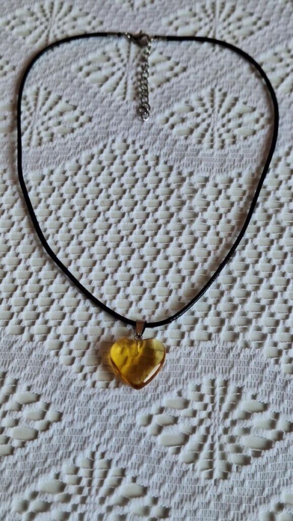 Náhrdelník srdíčko 2 cm, šňůrka z umělé kůže dlouhá 20 cm s prodlužovacím řetízkem 6 cm. Srdíčko je nové, z krásně zbarveného skla, barva světle hnědá, medová. Mohu poslat Balíkovnou, Zásilkovnou.