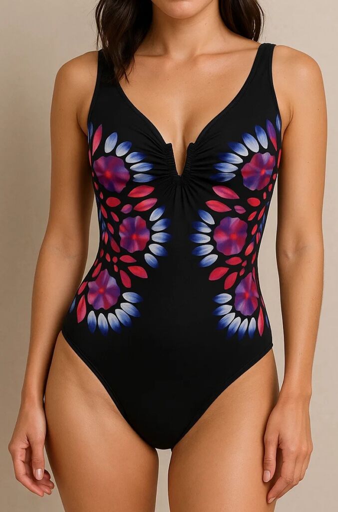 Rozměry: délka 63 cm, průramky 2 x 32 cm, boky 2 x 37 cm. Měřeno bez natažení. Porovnejte rozměry se svými plavkami.