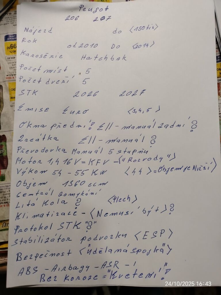 Schanim 206 Peugot.207.V super najezd cca do 150 ( ?) tis.Na barve nezalezi.Rok 2009,as 2012.Bez koroze,s rozvody motoru,spojky.5 dverovy.1,4.16 V .Motor pokuť možno KFV. výkon 44,aš 55 Kw. Klidne bez klimatizace tažného.S STK,,cca ?.EU.Emise 2 aš 4.(?).Spotreba cca:4,7 as 5 l.100Km.Opravdu zachovali udrzovany povsech strankach,bez vuli,kloubu rizeni,cepu,a jj. Opravdu udrzovany.Zeme nelepe ČR.INFO NA TEL 603 950 022 DEKUJI ZA NABYDKY.