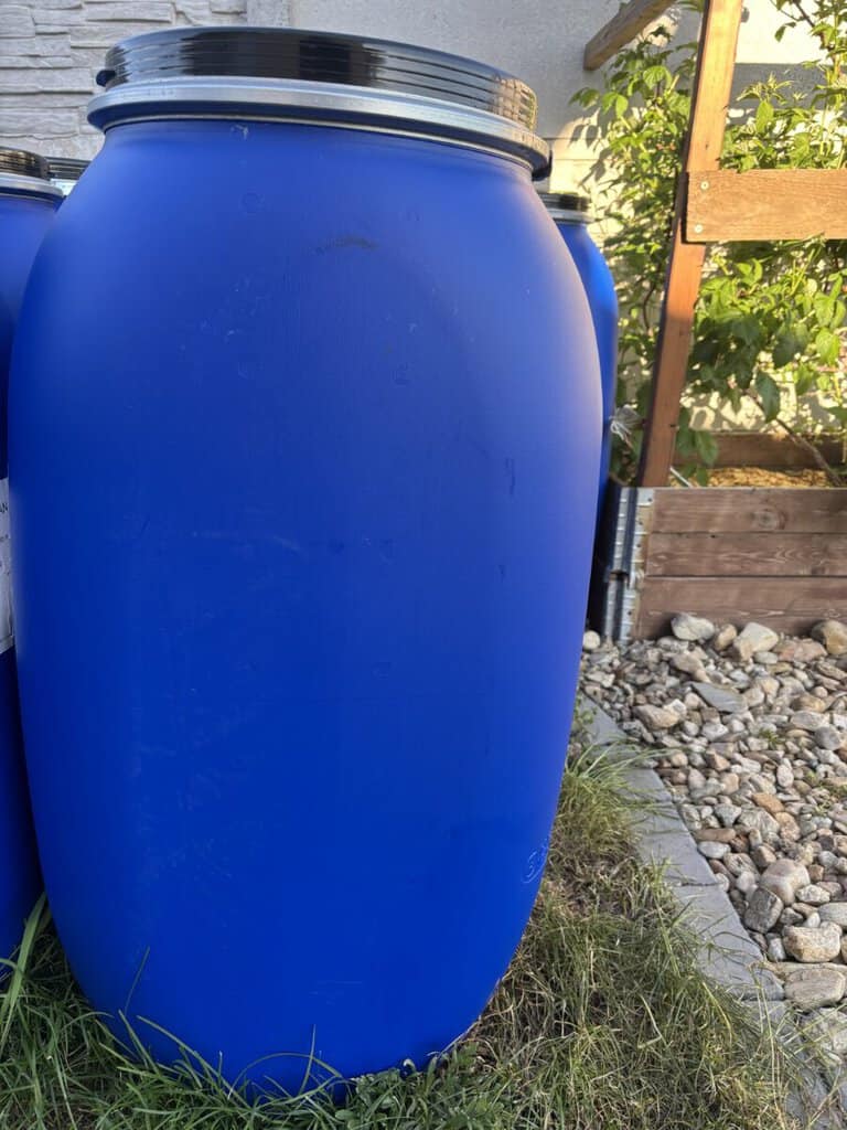 Prodám plastové sudy s víkem i objímkou o objemu 120l. ( hranaté, lepší na uskladnění )