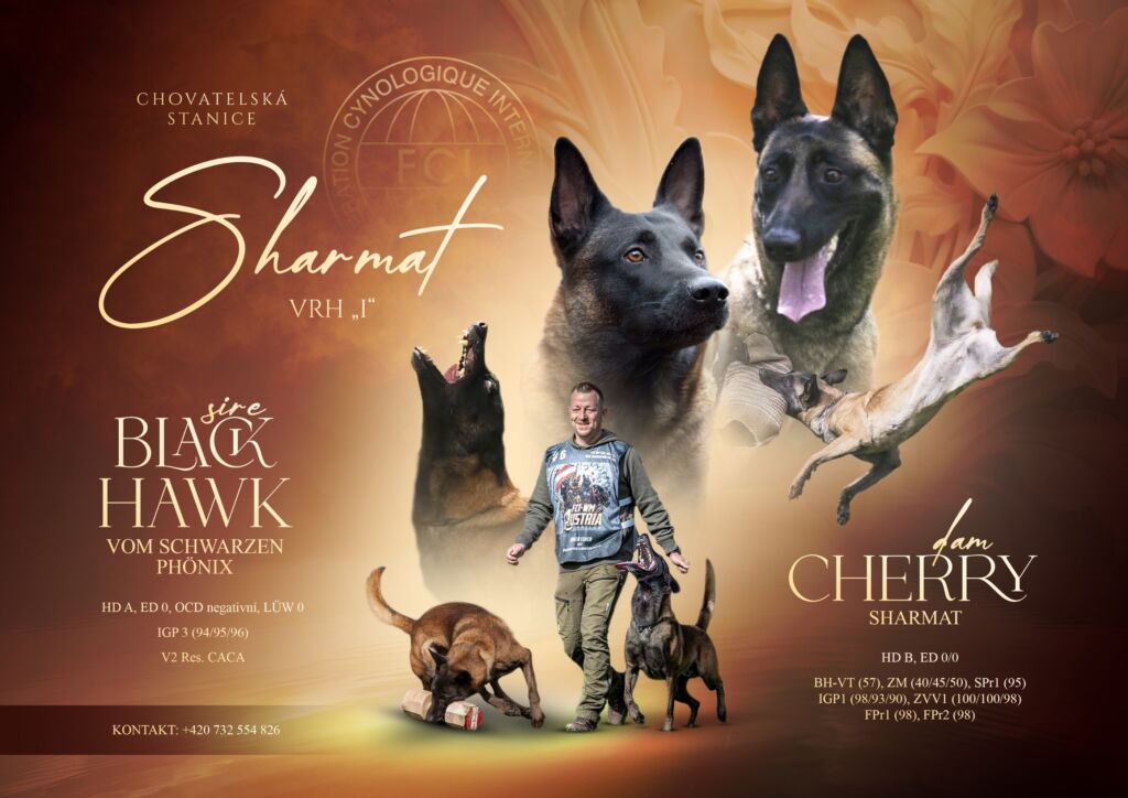 Otec Black Hawk vom schwarzen Phönix- Mistr Rakouska BOM IGP3 Matka. CHERRY Sharmat tel.732 554
