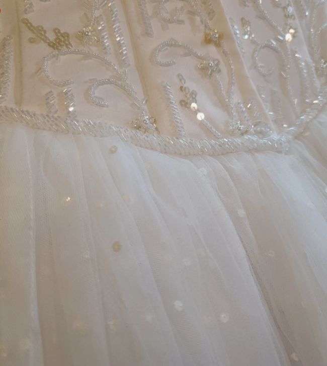 Prodám krásné bílé svatební šaty. Korálkový živůtek s tylovou sukní.