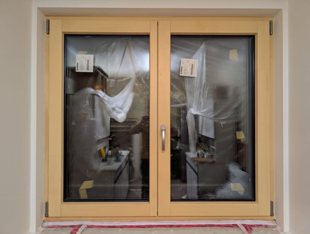 Zcela nové dřevohliníkové okno s trojitým zasklením.