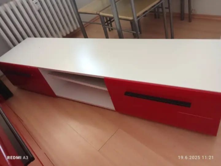 Prodám obývací stěnu červeno bílé barvy s led podsvětlením skládající se ze 2 skříněk buď volně stojících nebo k zavěšení,tv stolek, konferenční stolek a polička v dobrém stavu.Vice info emailem děkuji