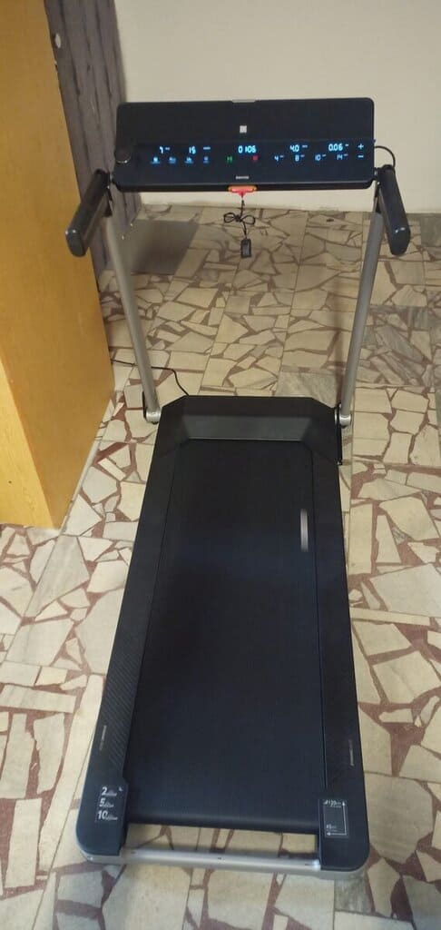 Prodáme běžecký pás Domyos Compact Run 100 (nové zboží, výstavní kus) na domácí použití, nosnost do 130 kg, rychlost od 1 do 14 km/hod., bez možnosti náklonu.