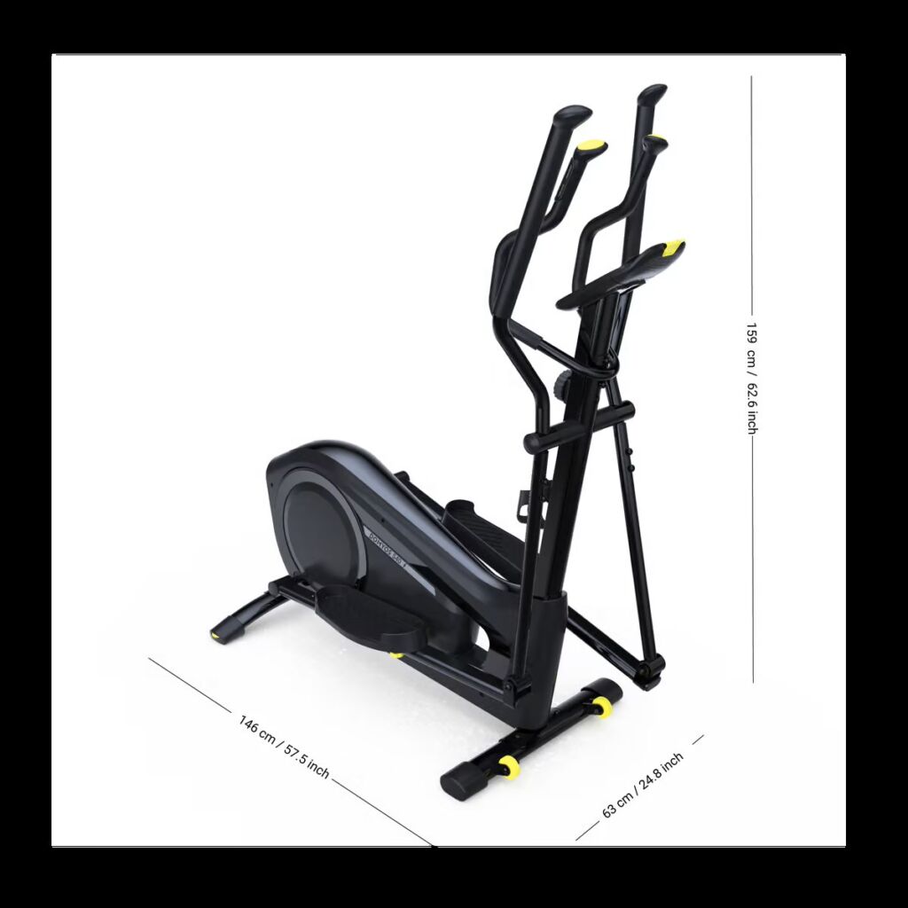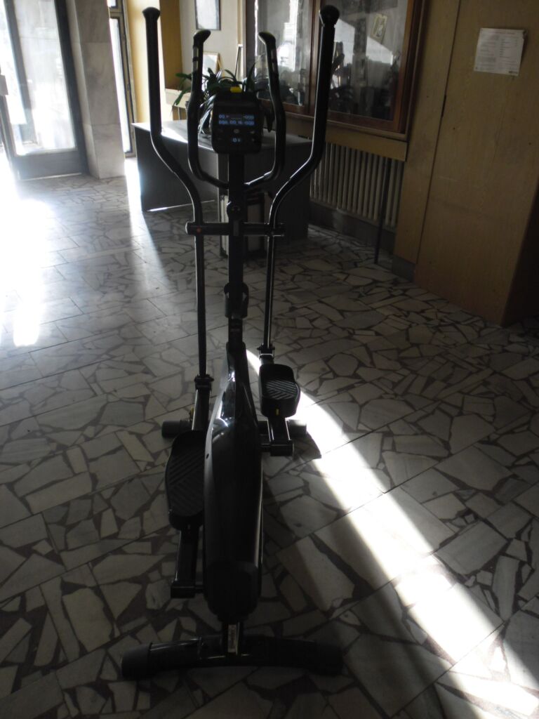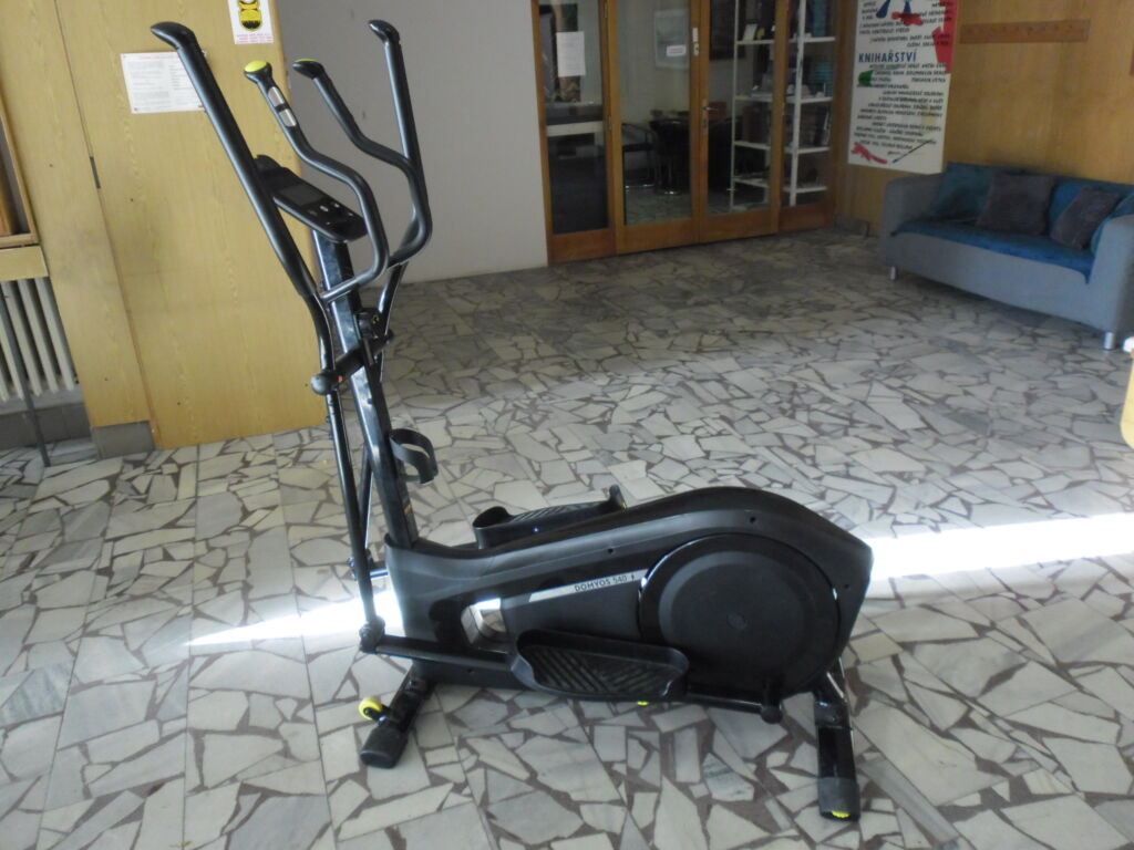 Prodáme eliptický trenažér Domyos EL540 (nové – výstavní zkušební kus) na domácí použití, nosnost do 130 kg, samonapájecí (nepotřebuje připojení do sítě), délka kroku 39 cm, setrvačník 9 kg s magnetickým bržděním, 15 úrovní zátěže.