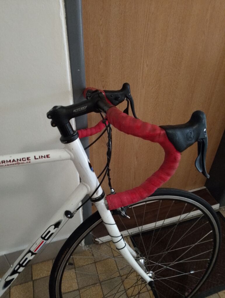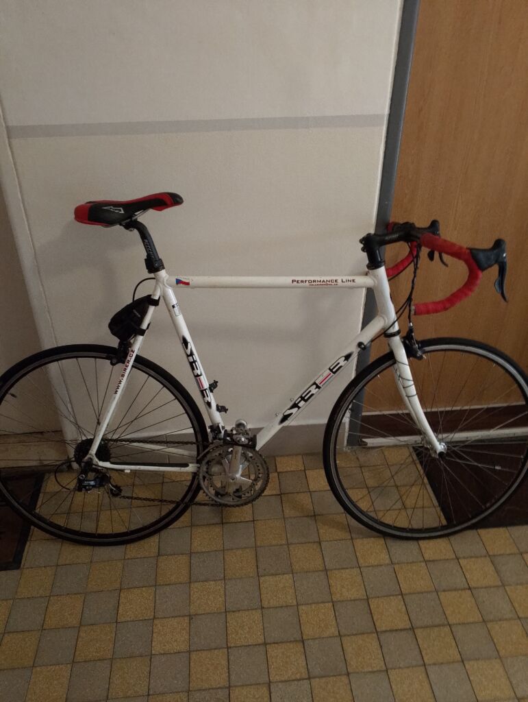 Rám Šírer – performance Line-ČR, ostatní komponenty ( brzdy, přehazovačka , přesmykač , nášlapy – Campagnolo – Xenon ).