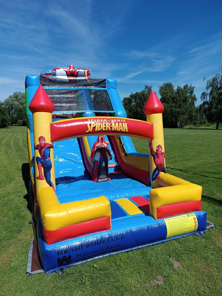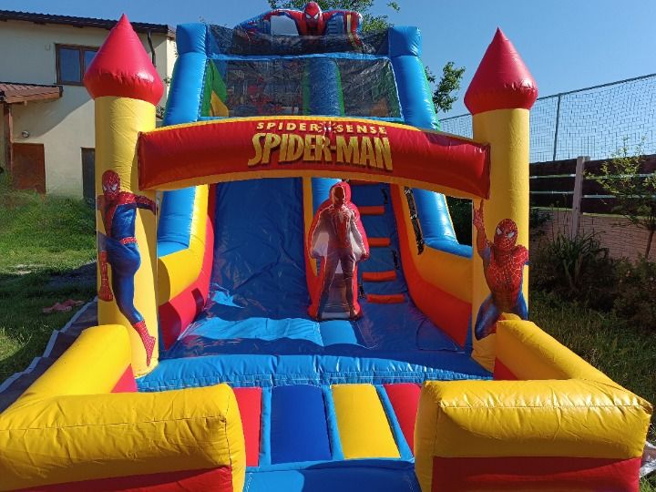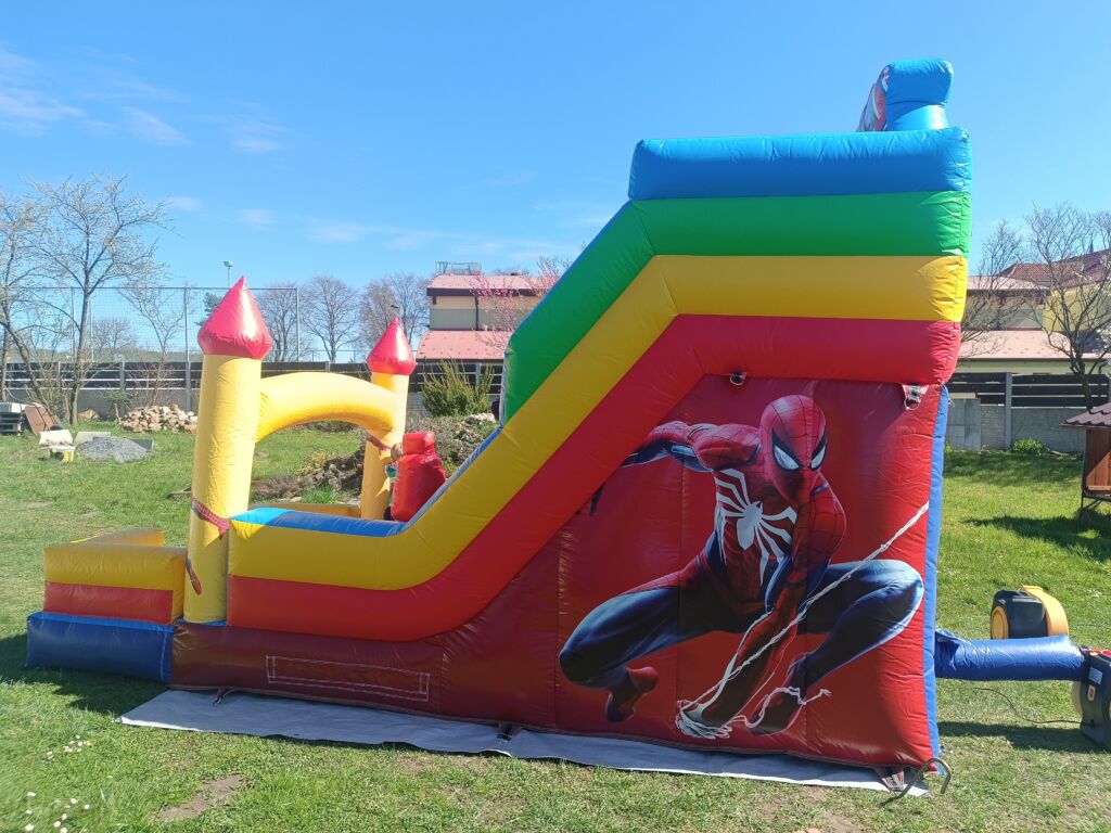 Hledáte perfektní atrakci na dětskou oslavu, den dětí, svatbu nebo jinou akci? 🎉 Náš skákací hrad Spider-Man s věžičkami a skluzavkou je přesně to, co potřebujete! Tento tematický nafukovací hrad s oblíbeným hrdinou Spider-Manem potěší malé fanoušky komiksů i všechny milovníky dobrodružství. Skákací hrad je vhodný pro děti 3-8 let.
