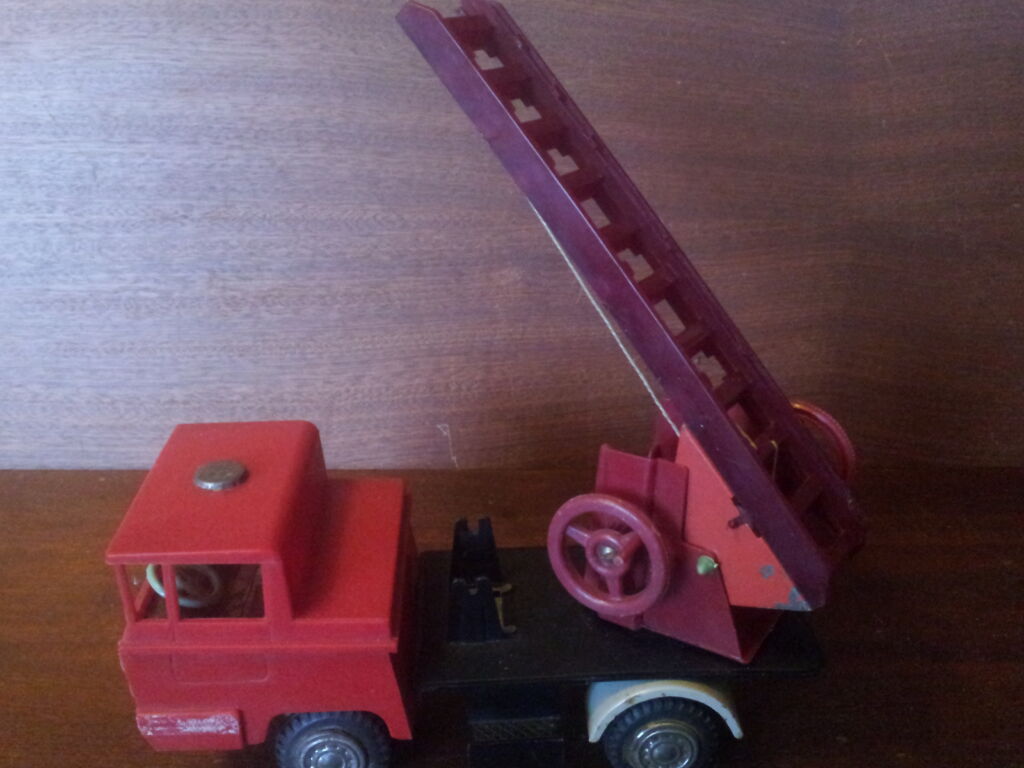 Prodám retro polskou hračku hasičské auto na setrvačník s vysouvacím žebříkem setrvačník i vysouvání žebříku plně funkční cena 400 Kč poštovné je v celkové ceně.