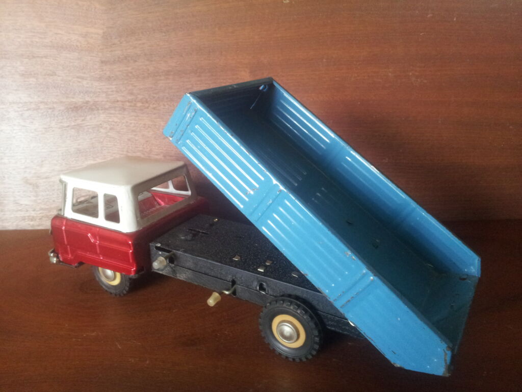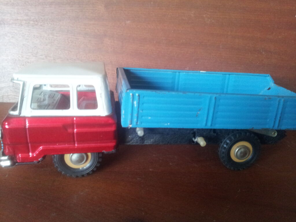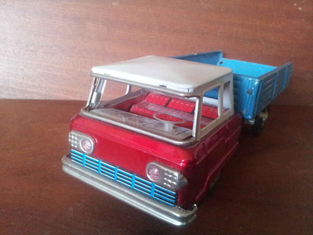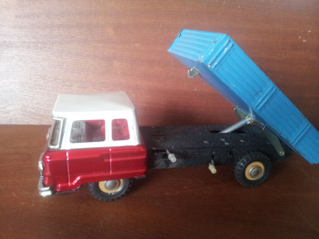 Prodám retro čínskou hračku plechové nákladní auto 35 cm dlouhé nepoškozené na setrvačník plně funkční cena 500 Kč poštovné je v celkové ceně.