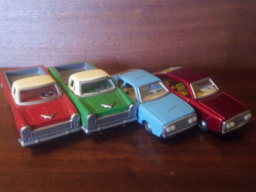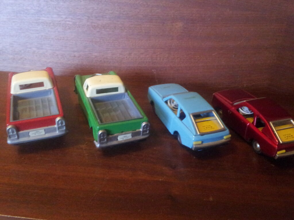 Prodám retro čínská plechová autíčka na setrvačník plně funkční nepoškozená cena za jedno 200 Kč za všechny 800 Kč poštovné je v celkové ceně.