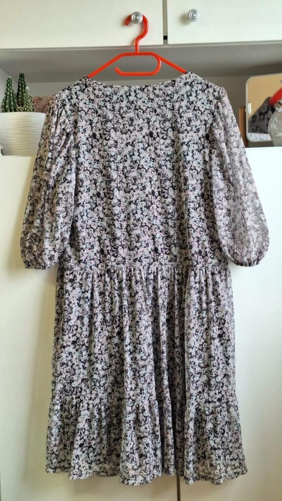 ROMANTICKÉ ŠATY vel.46, barva bílo-černá, délka 100 cm, šířka přes prsa 50 cm ( obvod 100 cm ). Volný střih sukýnka se rozšiřuje do volánu, šířka volánu dole je 130 cm. Šaty jsou neprůhledné, s lehkou podšívkou. Rukávky zakončené gumičkou, tříčtvrteční pod loket, rukávky jsou průhledné. Materiál lehoučký vzdušný polyester. Pěkné, bezvadné, jako nové. Mohu poslat Balíkovnou, Zásilkovnou.