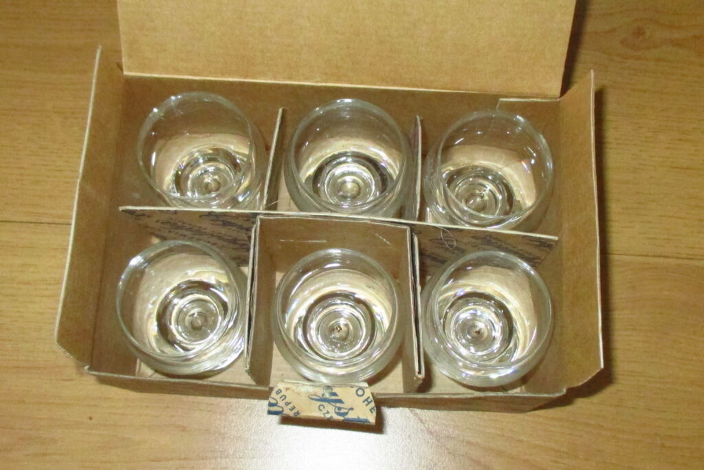 Sada 6ks skleniček, objem 5cl s cejchem, výška 7cm. Na pálenku. Nové, orig. obalu. 2 balení. Cena za 1 balení 120Kč + poštovné