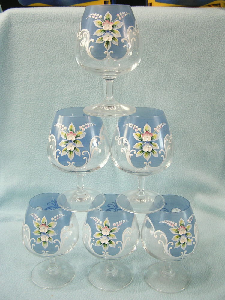 skleničky 6ks modré -zdobené