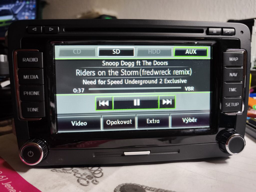 Plně funkční, odzkoušena navigace, rádio FM a DAB, optický parkovací systém, přehrávání z SD, CD, DVD, AUX atd.