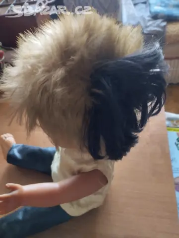 Starožitná pannenka s vlasy a strojkem výška 54 cm 1 očičko zapadá cena 490,-kč + zásilkovna