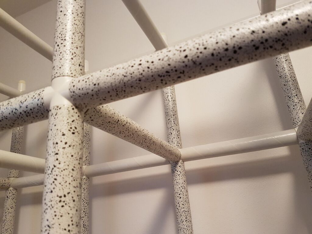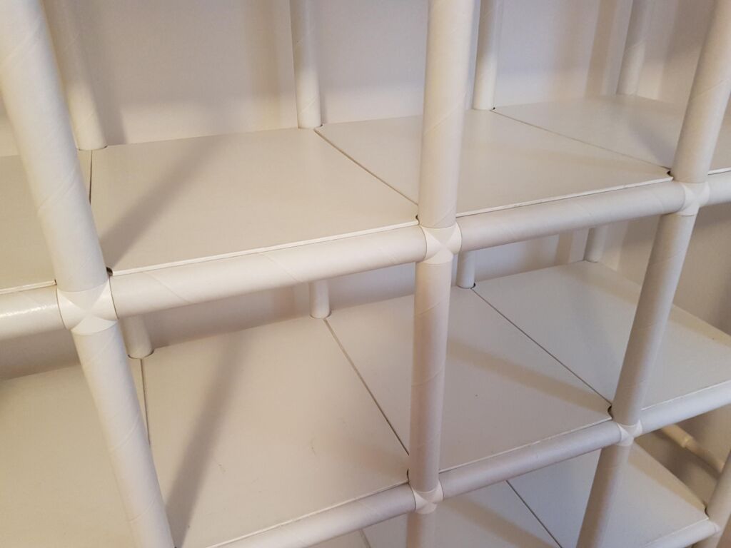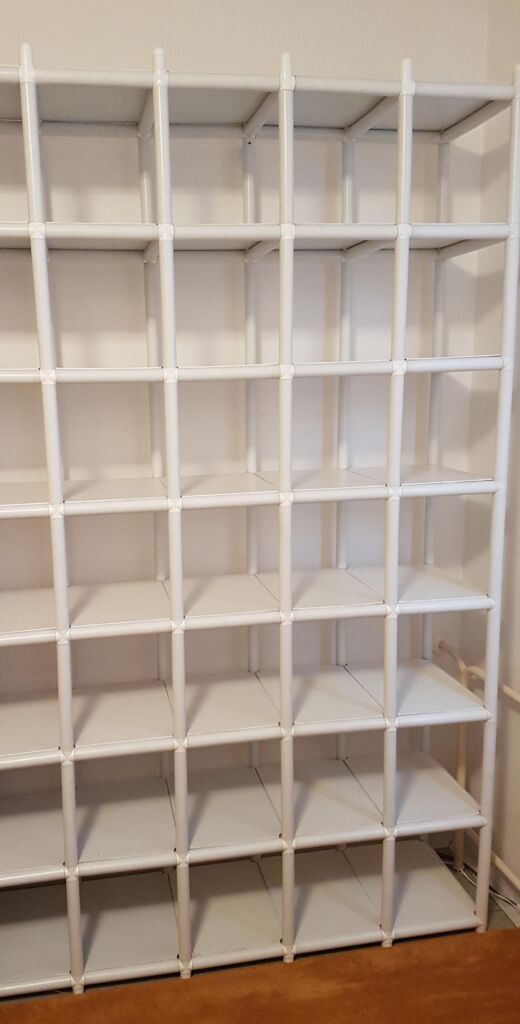 Barva trubic regálu je bílá, některé trubice jsou kropenaté, police bílé. Nosnost police do 10 Kg.
