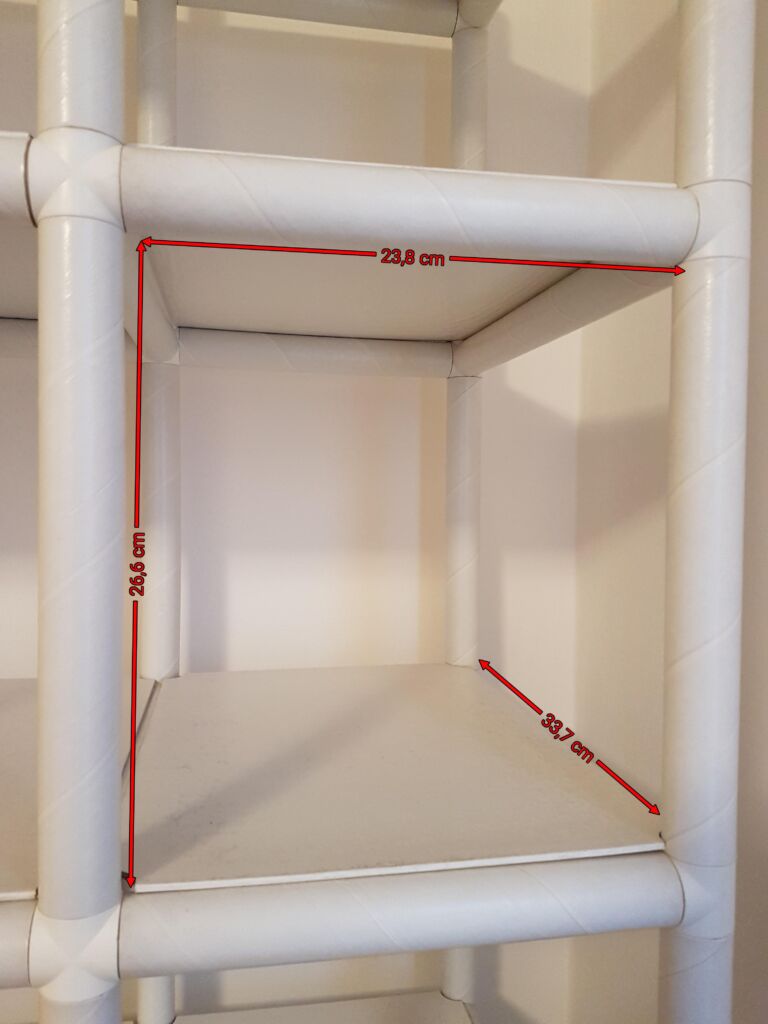 Do jedné přihrádky můžete dát krabici (předmět) max. 26,6 cm vysoký, 23,8 cm široký a 37 cm dlouhý. Kvůli pohodlné manipulaci se doporučuje krabice o něco menší.