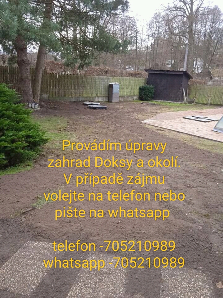 PROVÁDÍM TYTO PRÁCE Pomocné a úklidové práce na zahradě,štípání a úklid dřeva,sekání trávy s křovinořezem,úpravy zahrad, pomocný zedník(přidavač),malování chodeb a pokojů,výkopové práce na zahradě, úklid po malování, úklid uhlí a úklidové práce všeobecně Doksy,Staré Splavy, Skalka u Doks a okolí.Cena je 170kč/hodinu. POTŘEBUJETE POMOC S NĚJAKOU PRACÍ? VOLEJTE NA TELEFON 607318644.