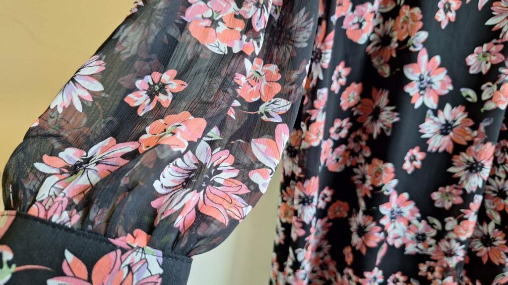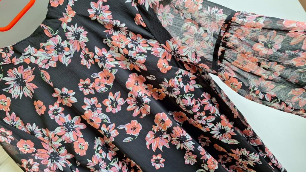 VOÁLOVÉ LETNÍ ŠATY velikost XL, s délkou 98 cm, šířka přes prsa 50 cm ( obvod 100 cm ). Šaty mají mírně áčkový střih, rozšiřují se, šířka u spodního okraje 65 cm. Jsou z lehkého příjemného materiálu – polyester s malým podílem elastanu, jsou volné, neobepínají. Šaty jsou neprůhledné. Rukávy jsou průhledné, dlouhé a zakončené légou s knoflíčkem. Zapínání na knoflíček je i na zadním díle. Šaty jsou volné, vzdušné. Jako nové, bezvadné. Mohu poslat Balíkovnou, Zásilkovnou.