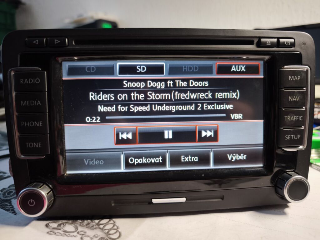 Plně funkční, odzkoušena navigace, optický parkovací systém, přehrávání z SD, CD, DVD, AUX atd. Stav viz fotky.