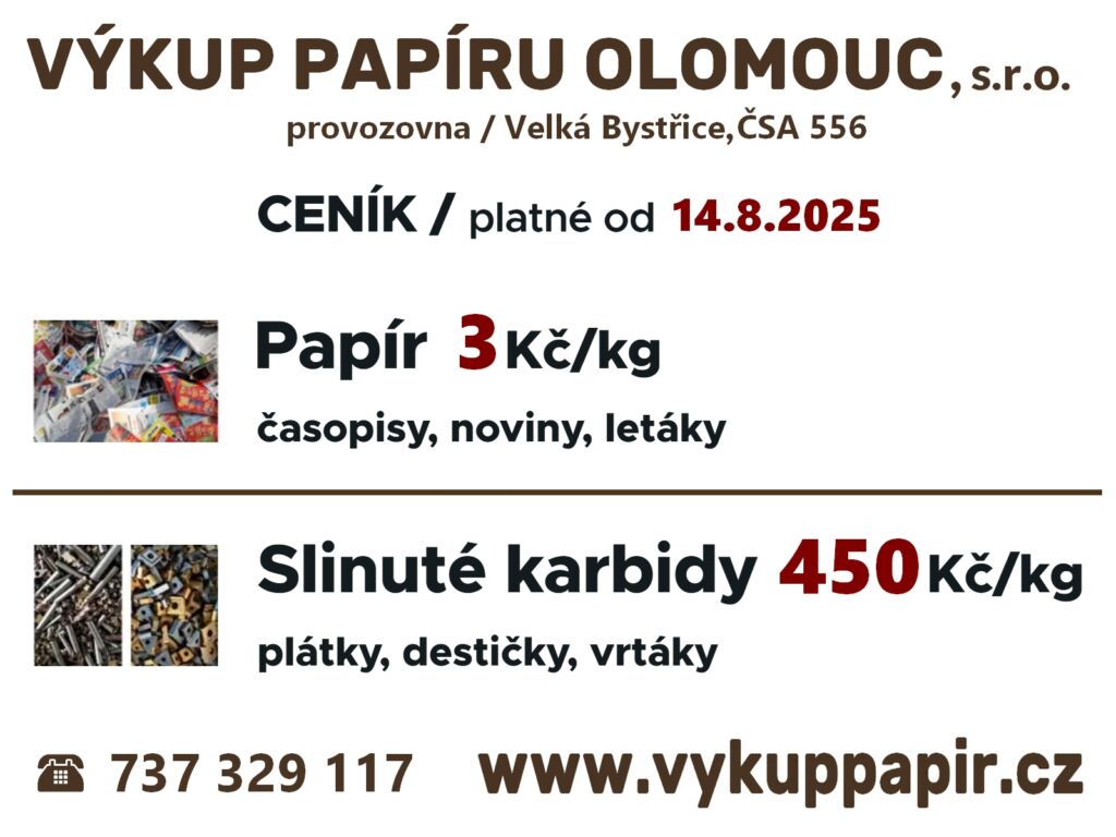 Kontaktní e-mail: vykuppapiruolomouc@seznam.cz