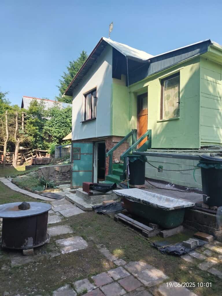 1.Obytná místnost,verandička,kuchyňka.Kamna na tuhá paliva.Veranda, kuchyňka zateplená,dva vchody.Na parcele lze vyvrtat,nebo vykopat studnu,nebo vyčistit vrt ve sklepě.